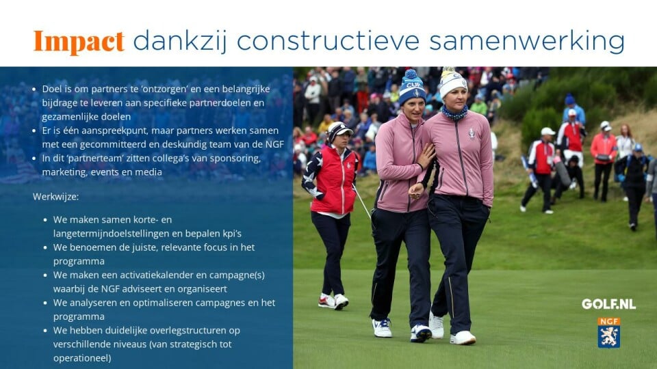 - Er is één aanspreekpunt, maar partners werken samen met een gecommitteerd en deskundig team van de NGF